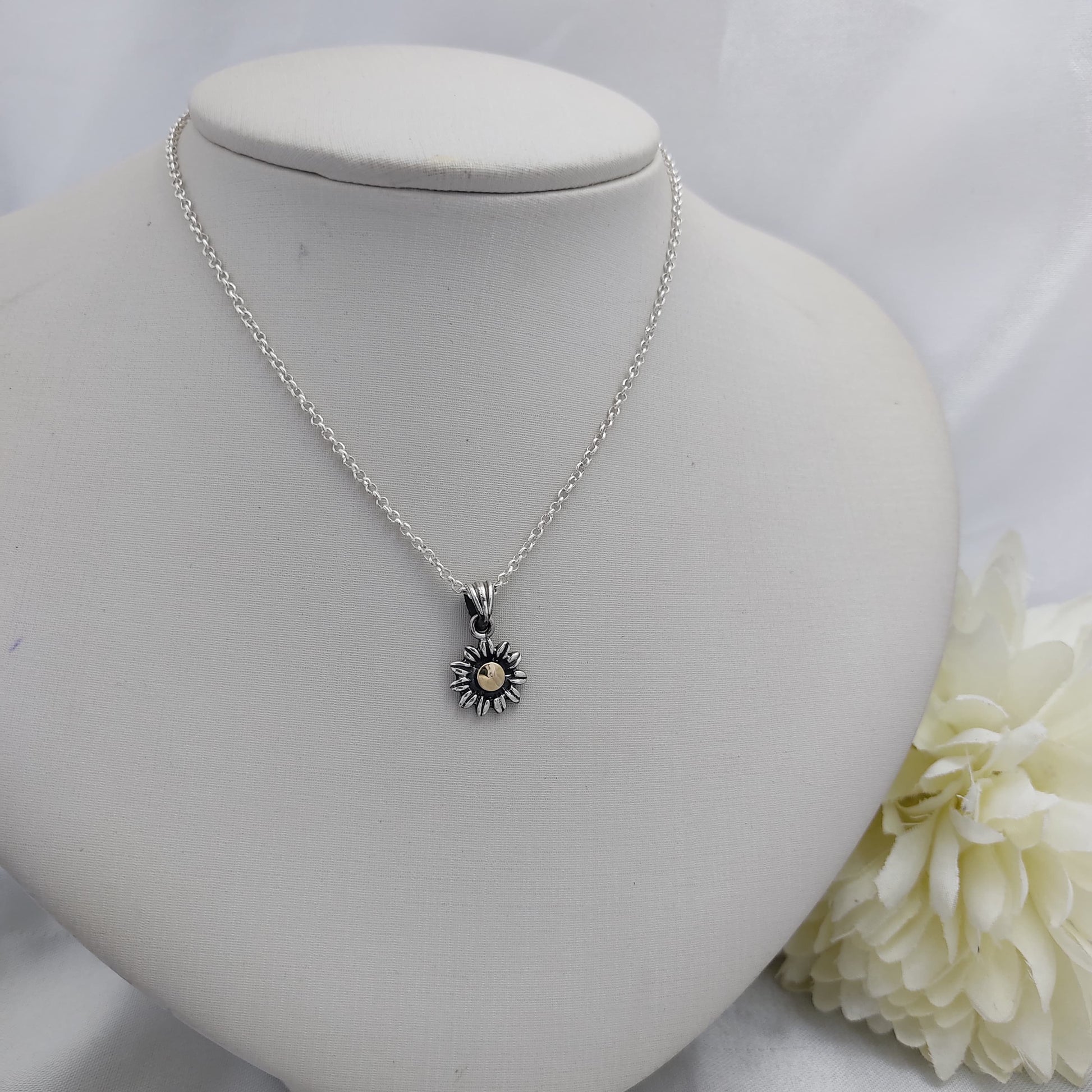 Agrega un toque de elegancia y delicadeza a tu look con nuestro conjunto de dije de flor en plata 925 y oro 9k con cadena de plata 925 La combinación perfecta de materiales de alta calidad para un estilo único y sofisticado. Haz una declaración de estilo con nuestra hermosa joya.